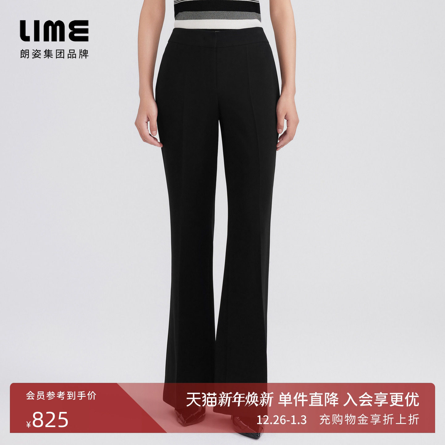 LIME莱茵年早春新款直筒显瘦长裤通勤西装裤女黑色显高显气质