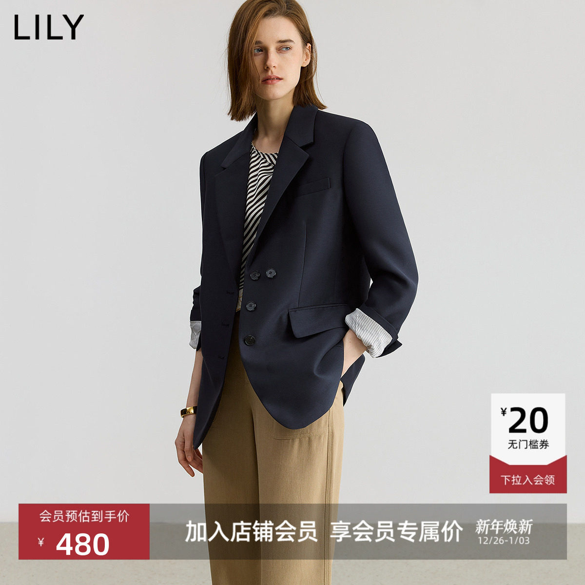 【商场同款】LILY2025新款经典都市正肩廓形休闲通勤西装外套女