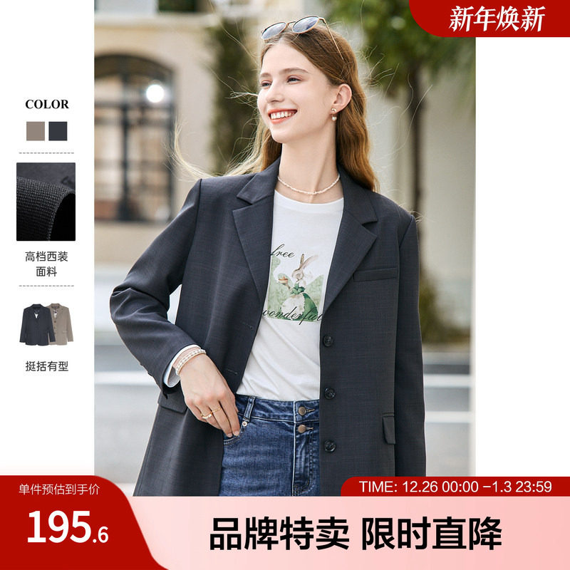 爱情魔鬼鱼 深灰色高级感通勤西装女2025冬季新款中长款西服外套