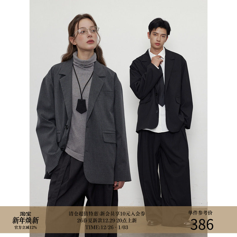 LR MADE 25AW 高品质细条纹路TR 微廓形平驳领通勤西装夹克外套