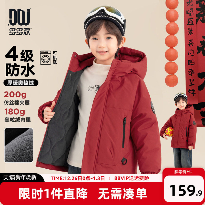 多多家男童棉服外套防水儿童棉衣2025秋冬新款中大童保暖上衣冬装