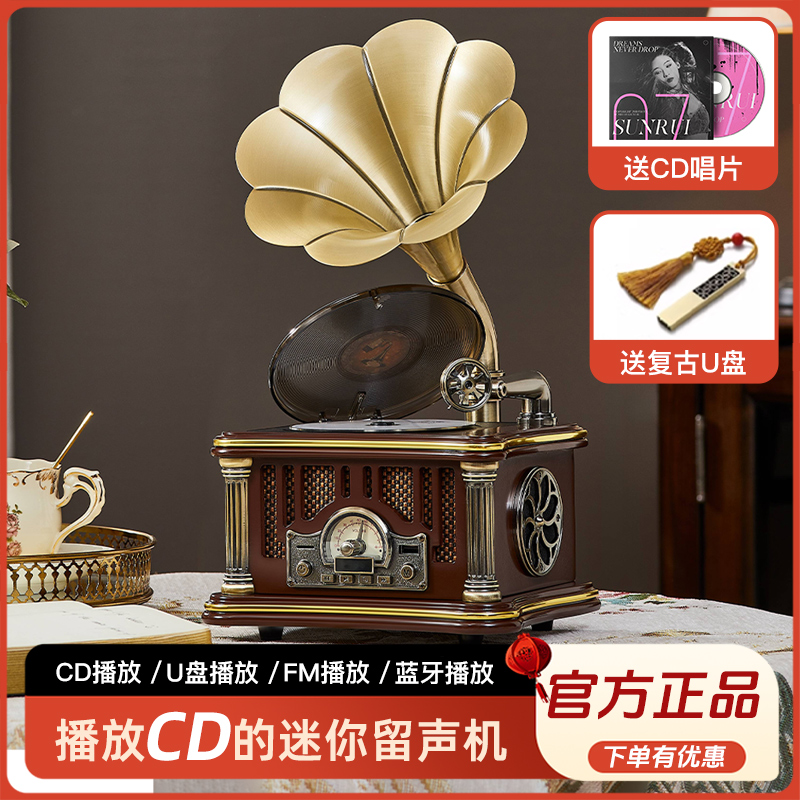 洛斯贝拉复古留声机迷你cd唱片机美式仿古唱片机音响生日礼物摆件