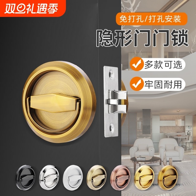 隐藏门锁背景墙卧室内房门锁储藏室门暗锁卫生间双钩防盗锁拉环锁