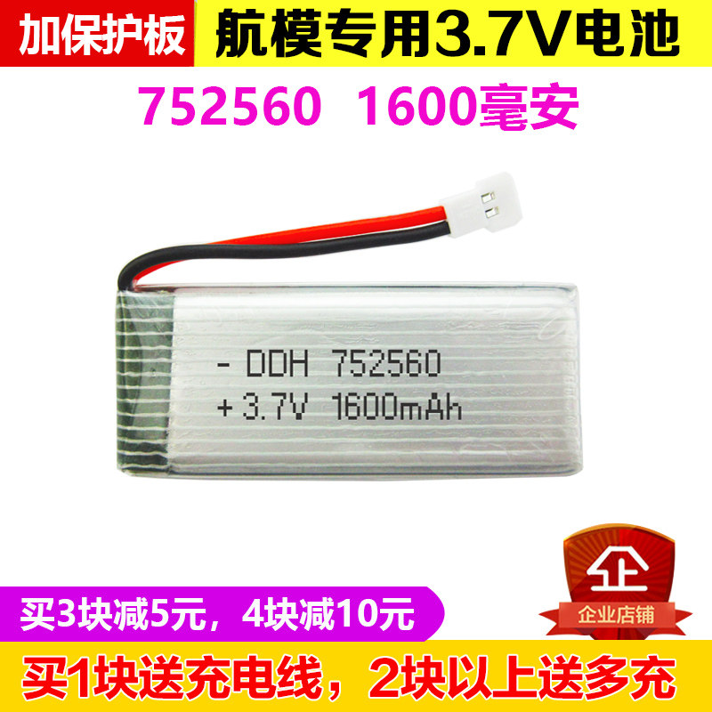 四轴飞行器儿童玩具飞机航拍无人机锂电池3.7V 752560 1600mAh