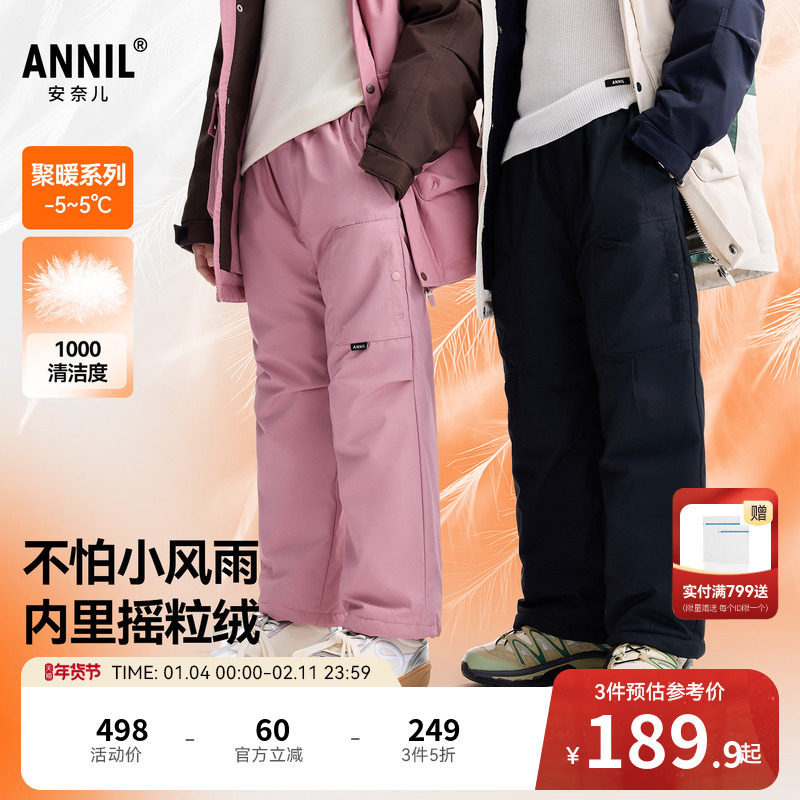 安奈儿男女童装加绒夹裤2026春新款保暖宽松直筒阔腿休闲运动长裤