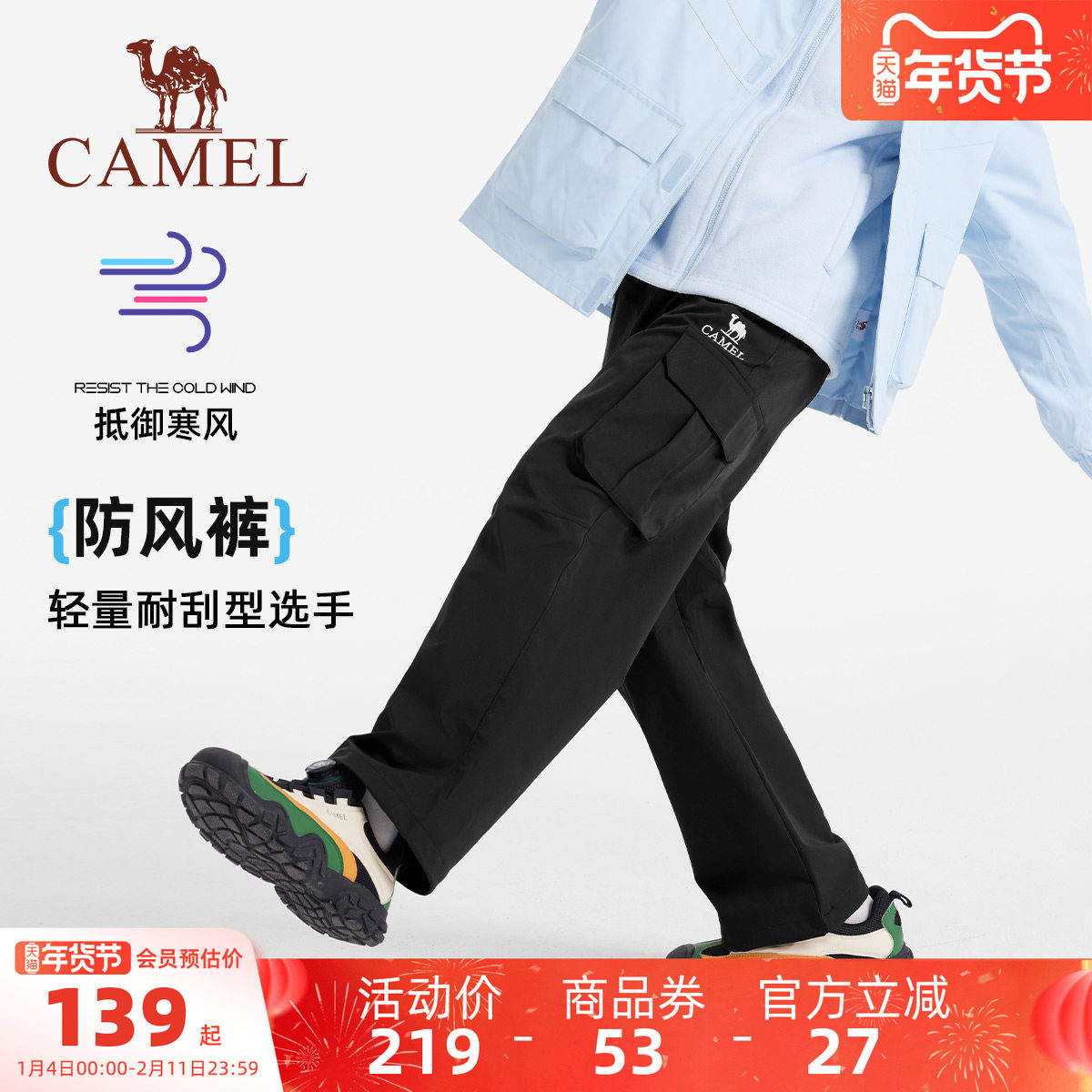 骆驼运动加绒长裤25秋冬男女同款直筒宽松工装裤户外防泼水登山裤