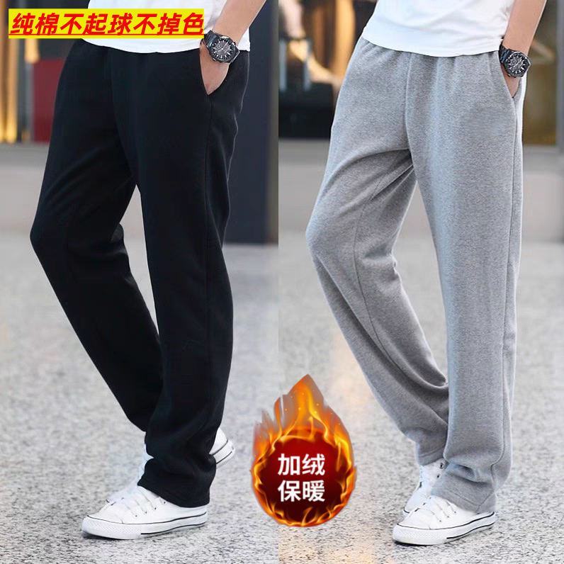 冬季加绒纯棉运动裤男长裤宽松直筒裤透气针织跑步休闲裤春秋卫裤