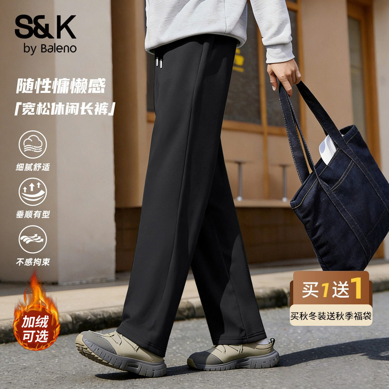 班尼路S&K系列宽松休闲裤子男款冬季加绒保暖长裤黑色春秋直筒裤A