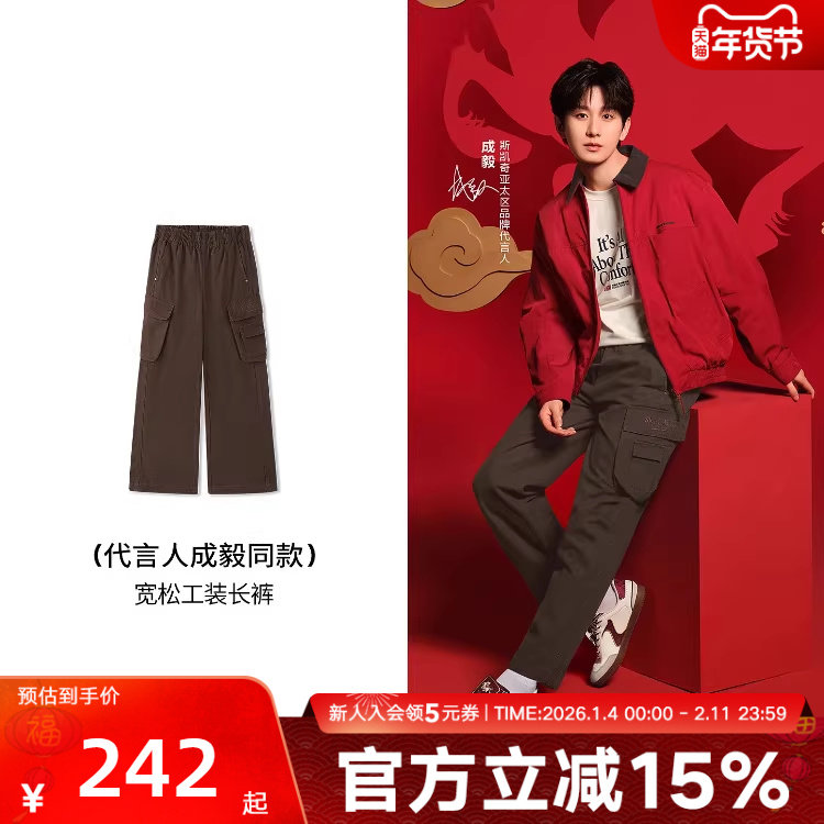 【成毅同款】斯凯奇工装裤26新年战袍男长裤宽松直筒裤L126M001