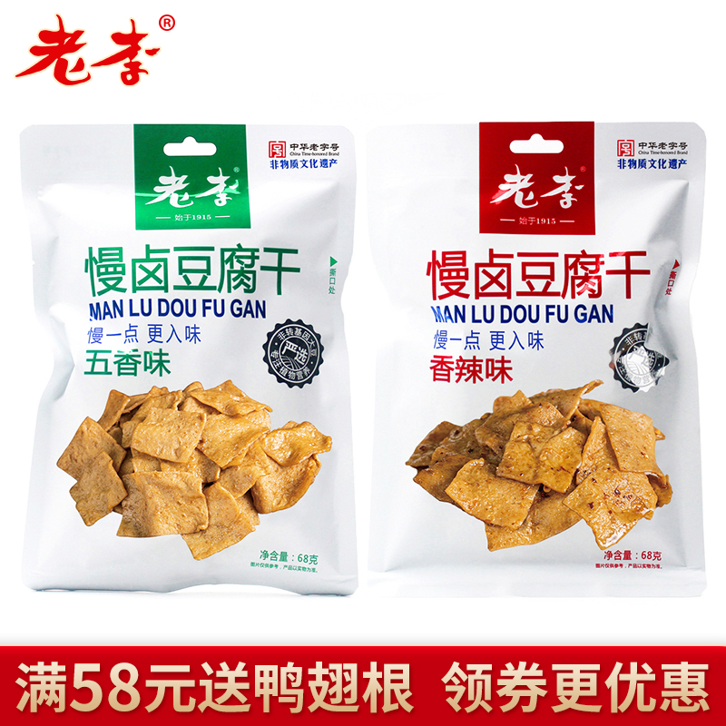 【老李食品】中华老字号慢卤豆腐干五香味/香辣味68g*6休闲零食