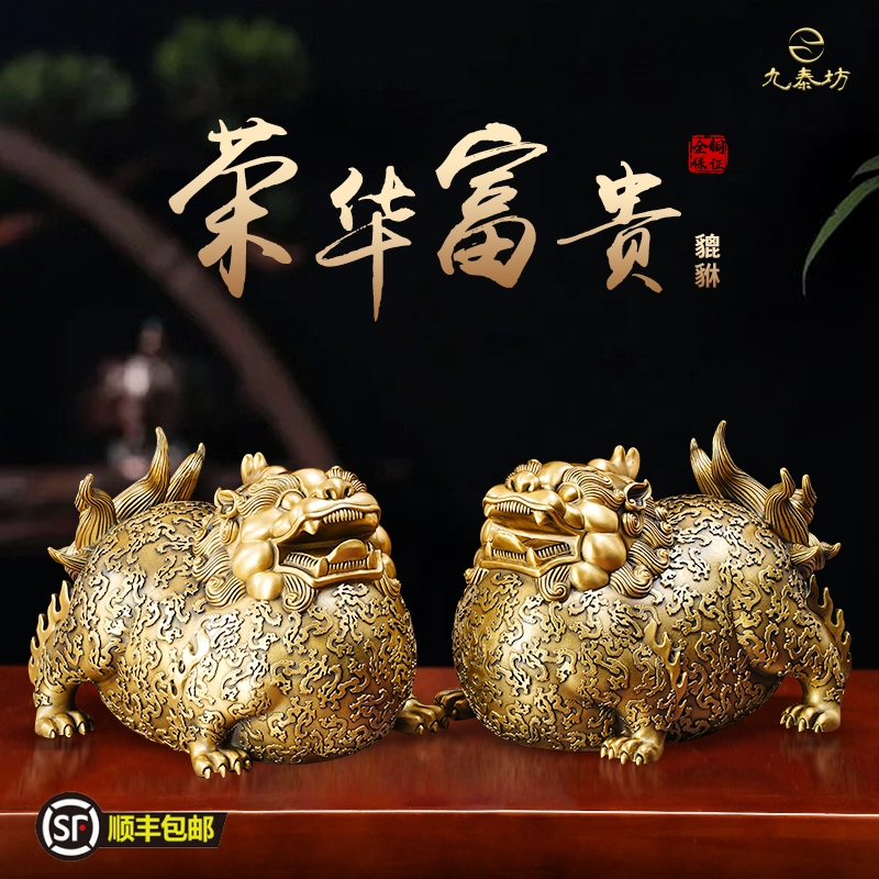 黄铜招财貔貅摆件铜貔貅大号公母皮丘聚财家居办公室店铺开业礼品