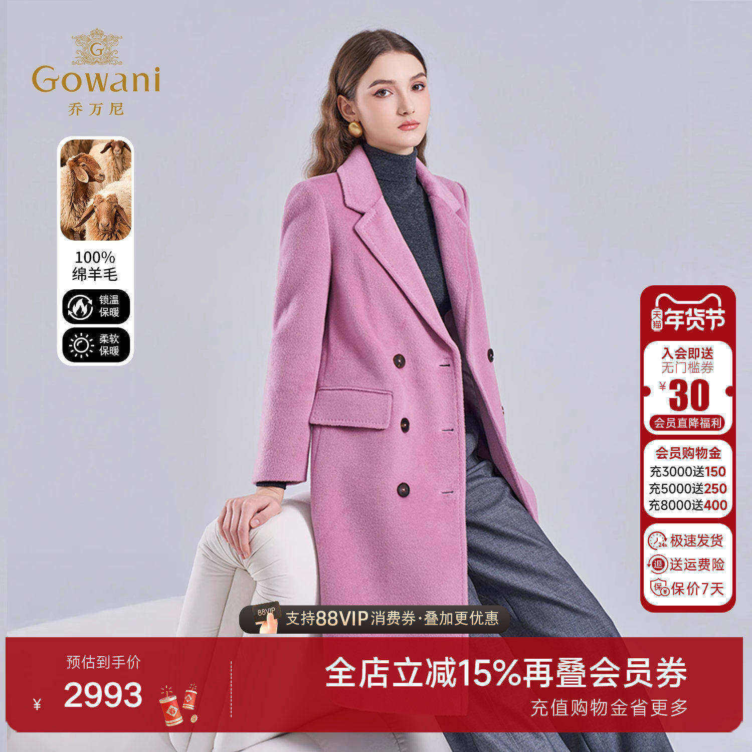 【100%绵羊毛】秋水伊人毛呢外套女2025冬季新款双排扣中长款大衣