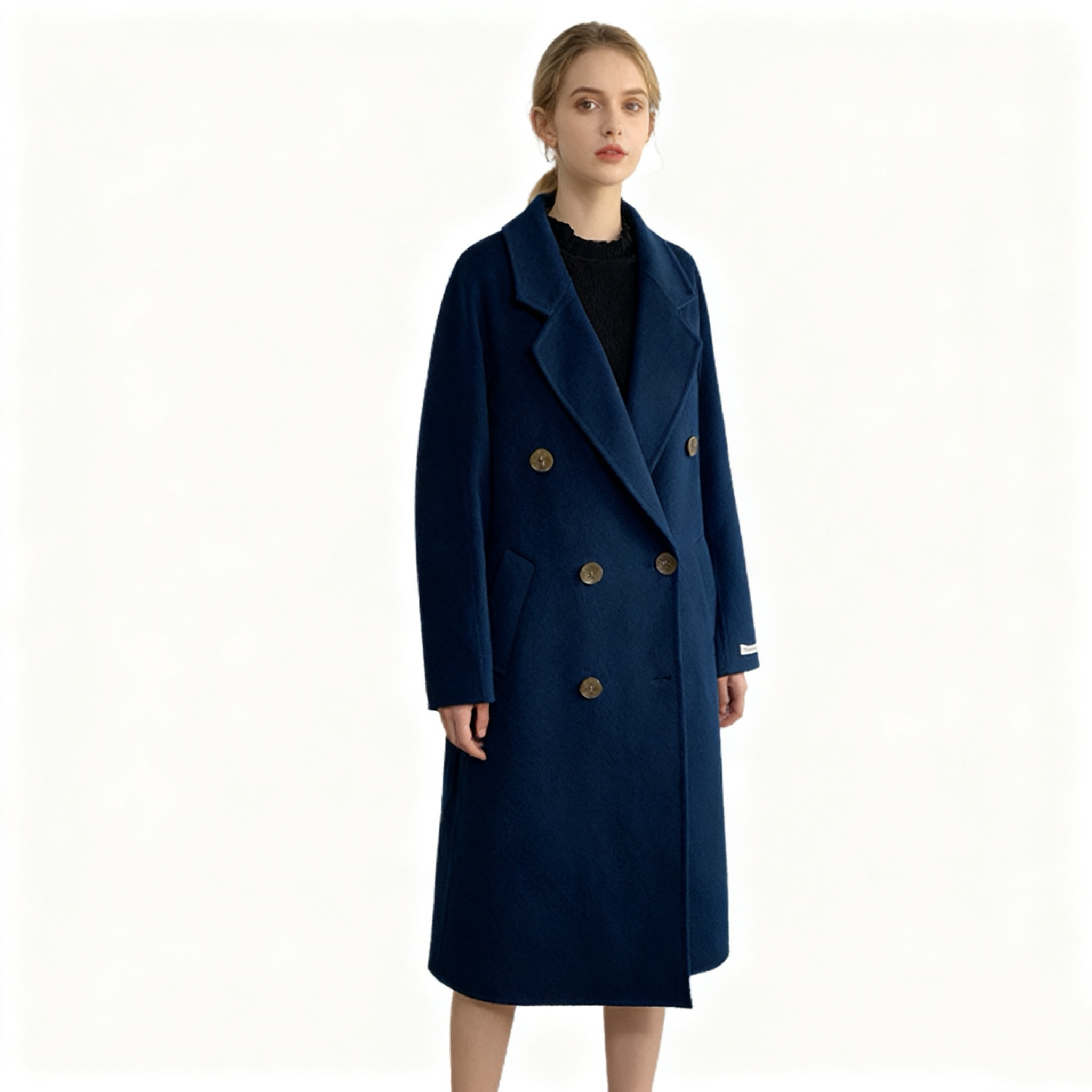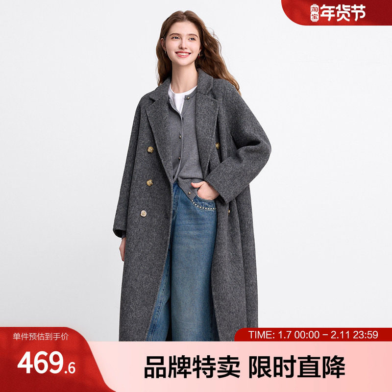 绵羊毛双排扣长款毛呢外套女商务高级感知性穿搭大衣ET4A850