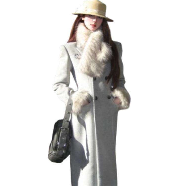 苏丽羊驼高定长款101801爆款大衣双排扣女长款秋冬毛呢外套
