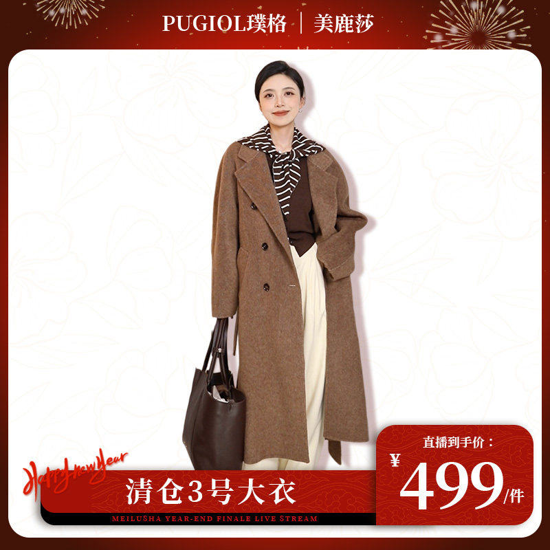 2025年冬装Outlets专柜 RU系列含绵羊毛双排扣长款毛呢外套大衣女