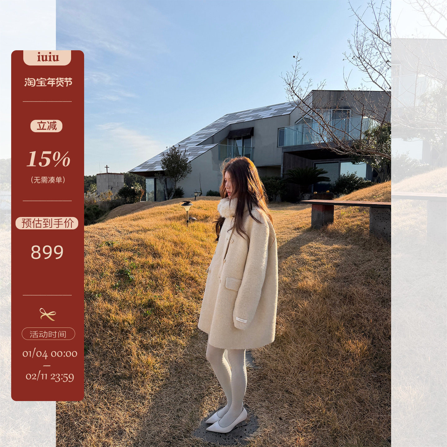 IUIU阿晶家 苏力羊驼绒毛呢大衣女冬季中长款双排扣复古廓形外套