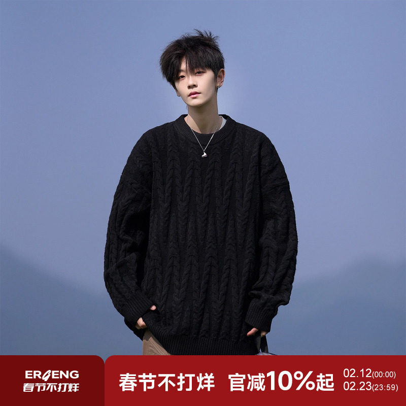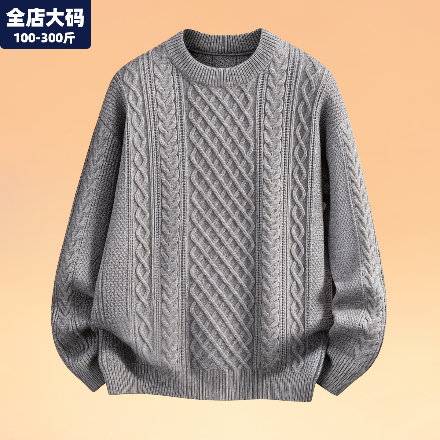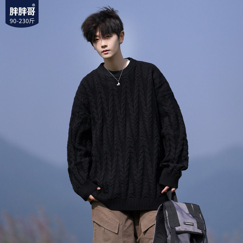 胖胖哥麻花纹理感毛衣男秋冬季新款cleanfit大码宽松痞帅针织衫潮