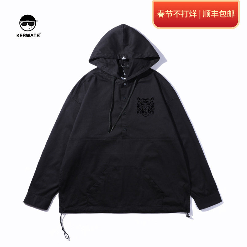5折清仓港风老虎头潮牌印花加肥加大针织衫大码男装黑色带帽衬衫