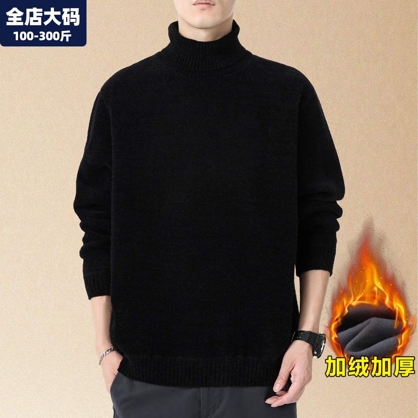 高领毛线衣男冬季保暖加绒加厚针织衫男士胖子加肥加大特大码男装