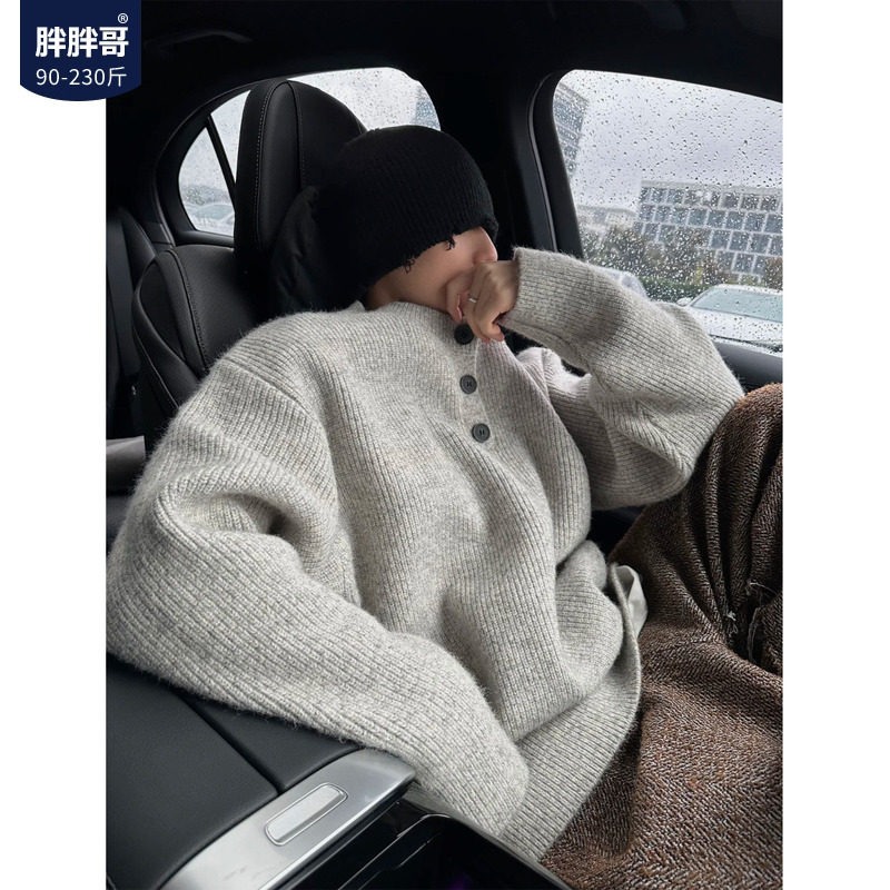 胖胖哥美式亨利领毛衣男款冬季慵懒风cleanfit酷飒复古针织衫外套