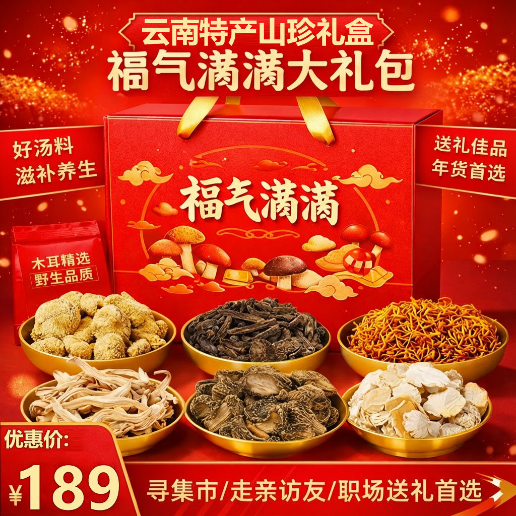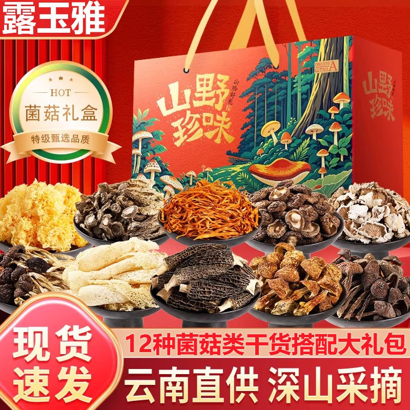 云南野生有机山珍菌菇年货干货礼盒羊肚菌竹荪姬松茸送长辈汤料包