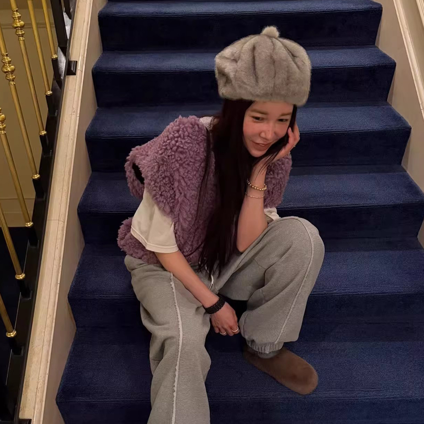 韩国东大门小香风皮毛一体仿羊羔毛马甲外套中长款撞色保暖大衣女