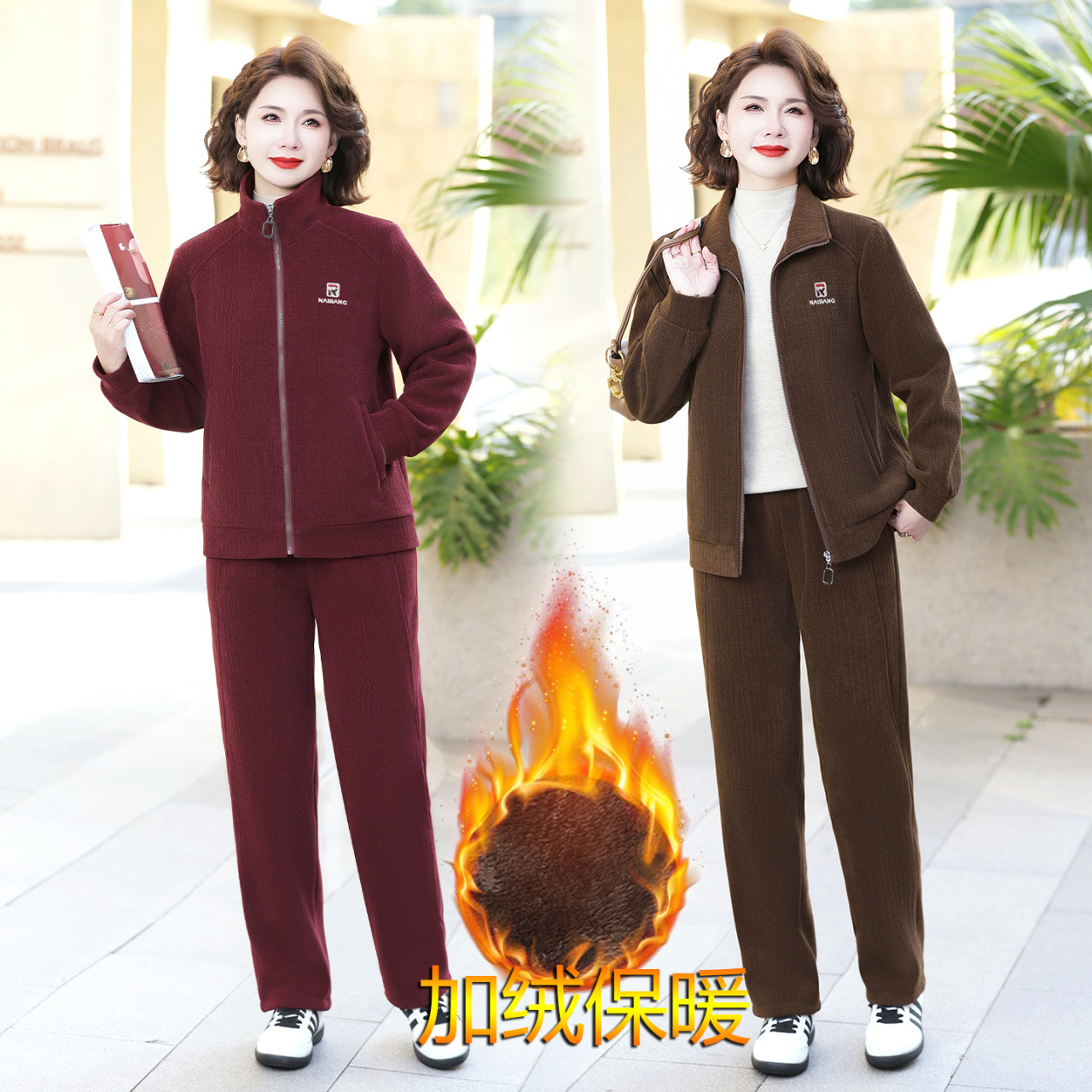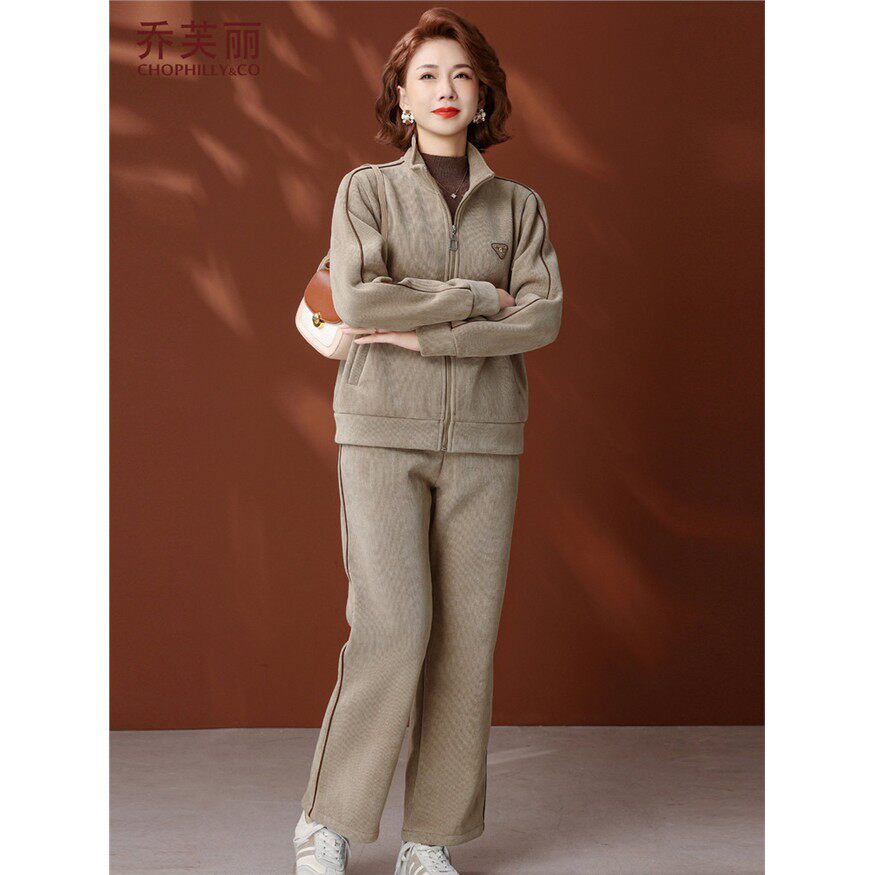 妈妈冬装运动服套装两件套2025新款秋冬季加绒加厚外套保暖上衣女