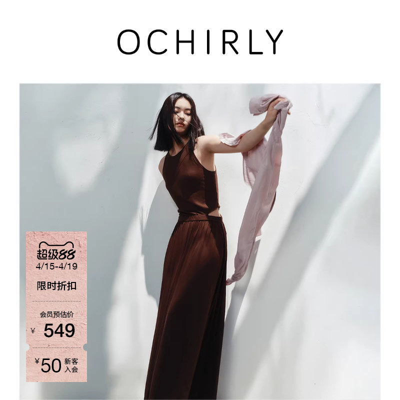 OCHIRLY欧时力 莫代尔棉无袖连衣裙吊带长裙镂空收腰夏新
