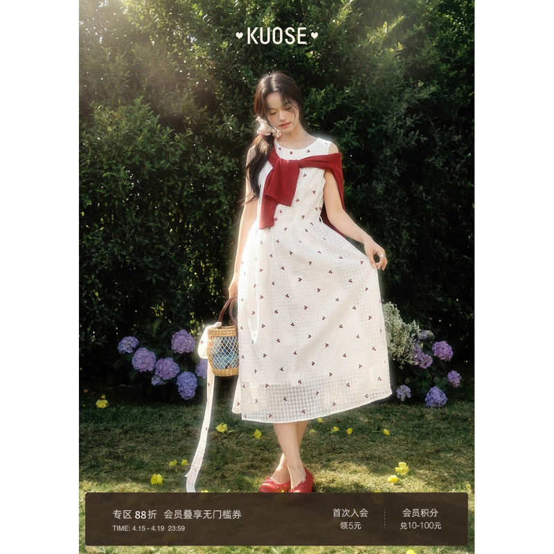 繁花裙|海边度假风印花吊带裙女2026年春新款百搭无袖红色连衣裙