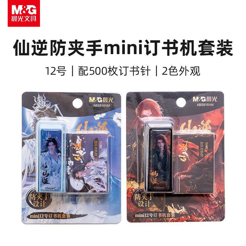 晨光仙逆联名迷你订书机高颜值ins学生专用小型省力办公装订机装订纸张加厚型多功能省力钉书机便携定订厚书