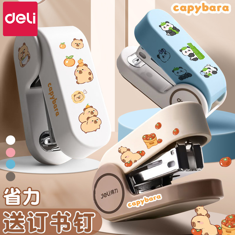 可爱卡皮巴拉公仔订书机套装学生用迷你小号订书器办公装订机文具