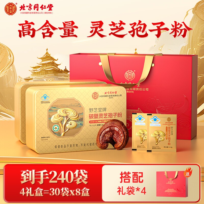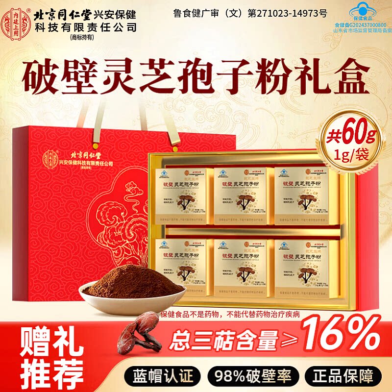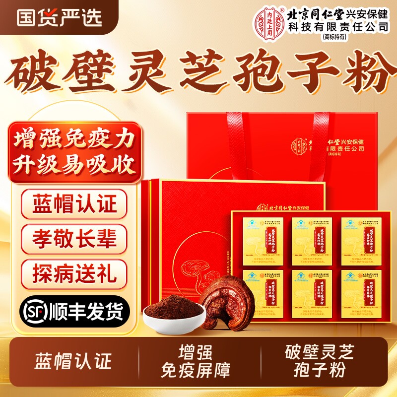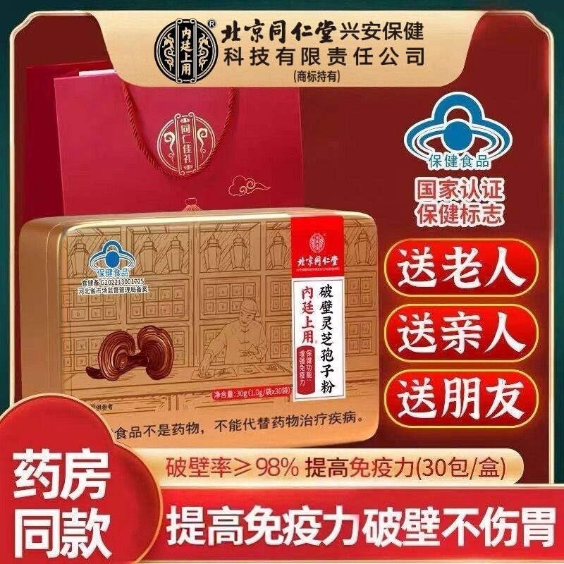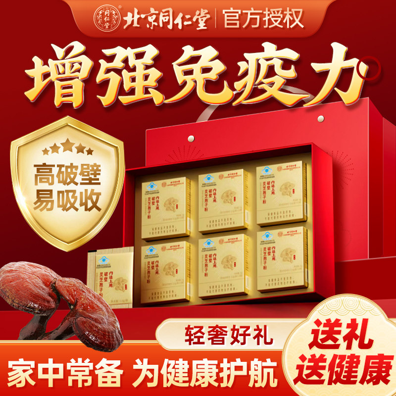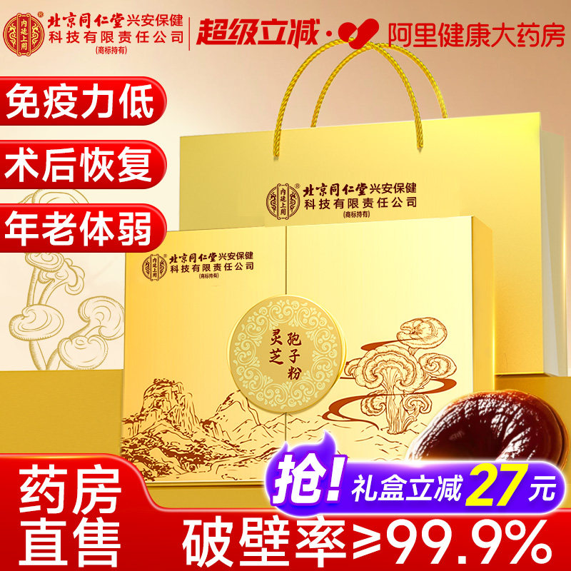北京同仁堂内廷灵芝破壁孢子粉中老年增强免疫力送长辈探病人礼盒