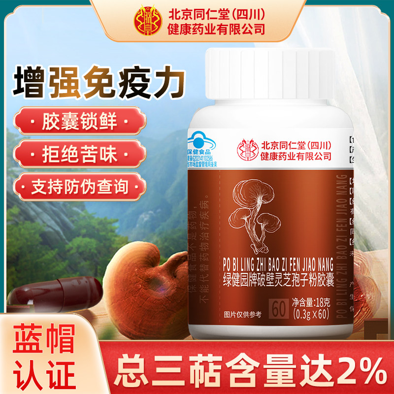 北京同仁堂破壁灵芝孢子粉胶囊60粒中老年滋补增强免疫力正品蓝帽