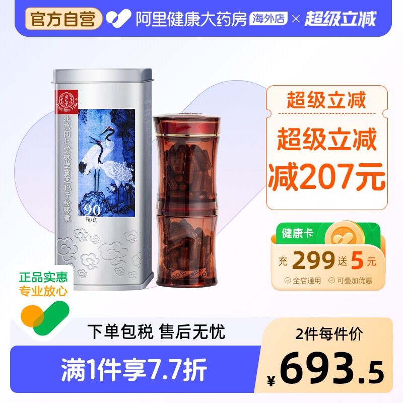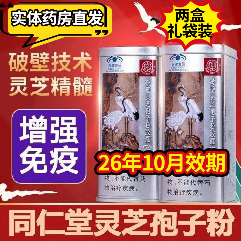 北京同仁堂破壁灵芝孢子粉胶囊两罐礼盒共180粒90粒/罐增强免疫力