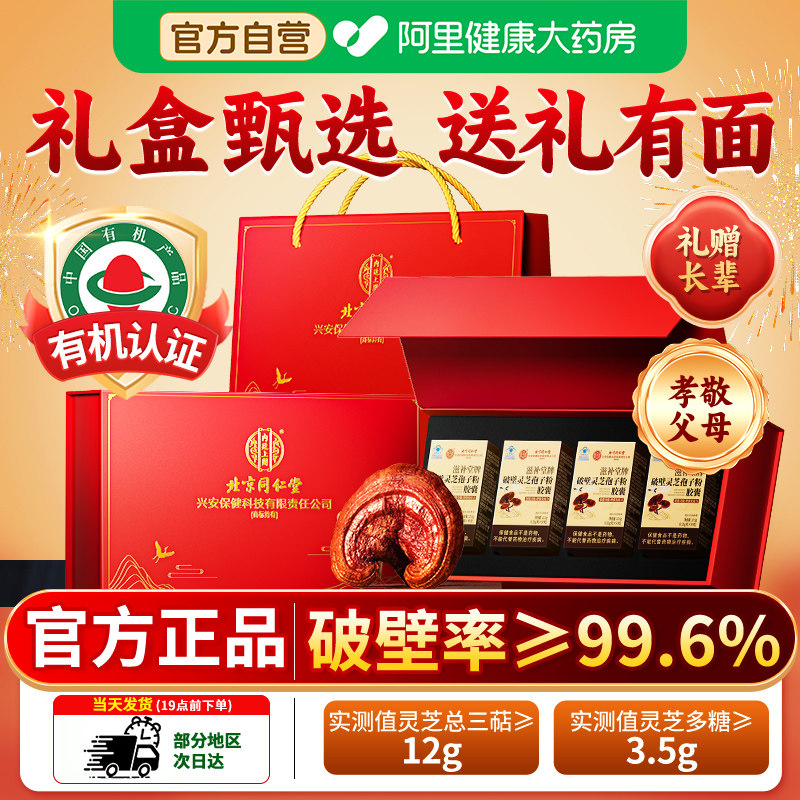 北京同仁堂内廷上用破壁灵芝孢子粉有机增强免疫力礼盒官方旗舰店
