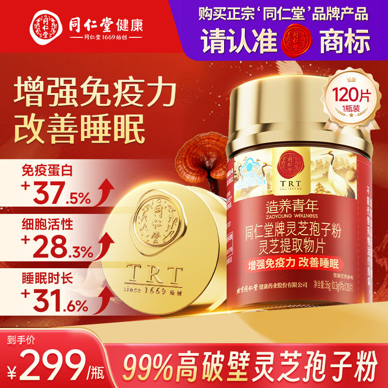 同仁堂破壁灵芝孢子粉中老年片改善睡眠正品官方旗舰店北京同仁堂