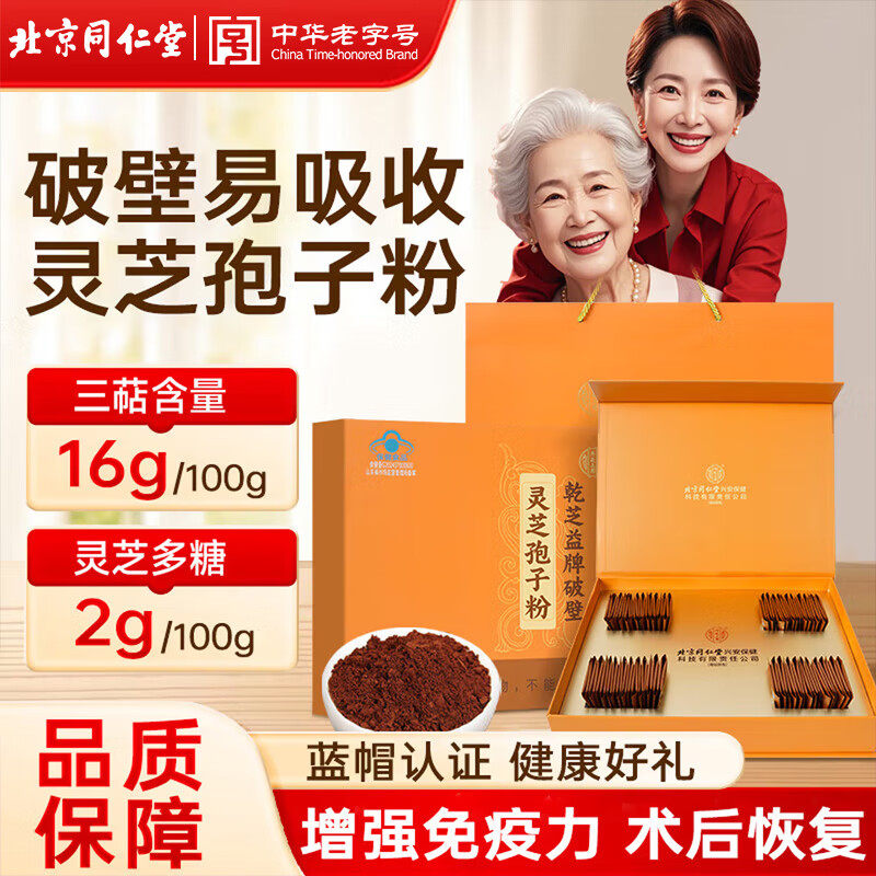 北京同仁堂破壁灵芝孢子粉增强免疫术后恢复送父母长辈礼物200g