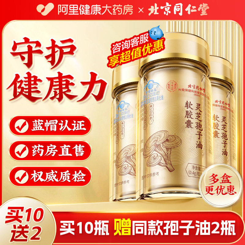 同仁堂灵芝孢子油软胶囊破壁灵芝孢子粉成人中老年补品官方旗舰店