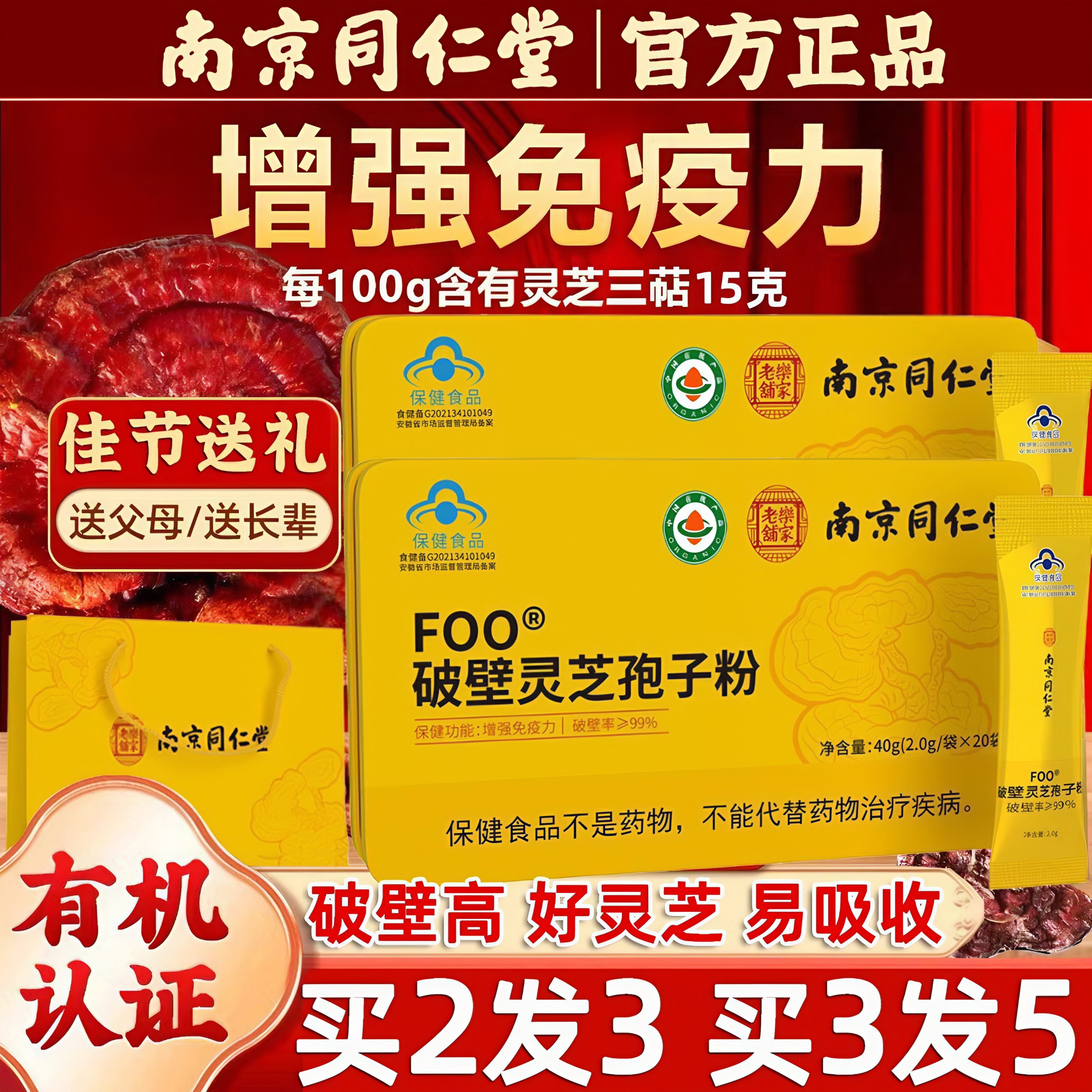 南京同仁堂FOO破壁灵芝孢子粉正品官方旗舰店增强免疫力礼盒装xm