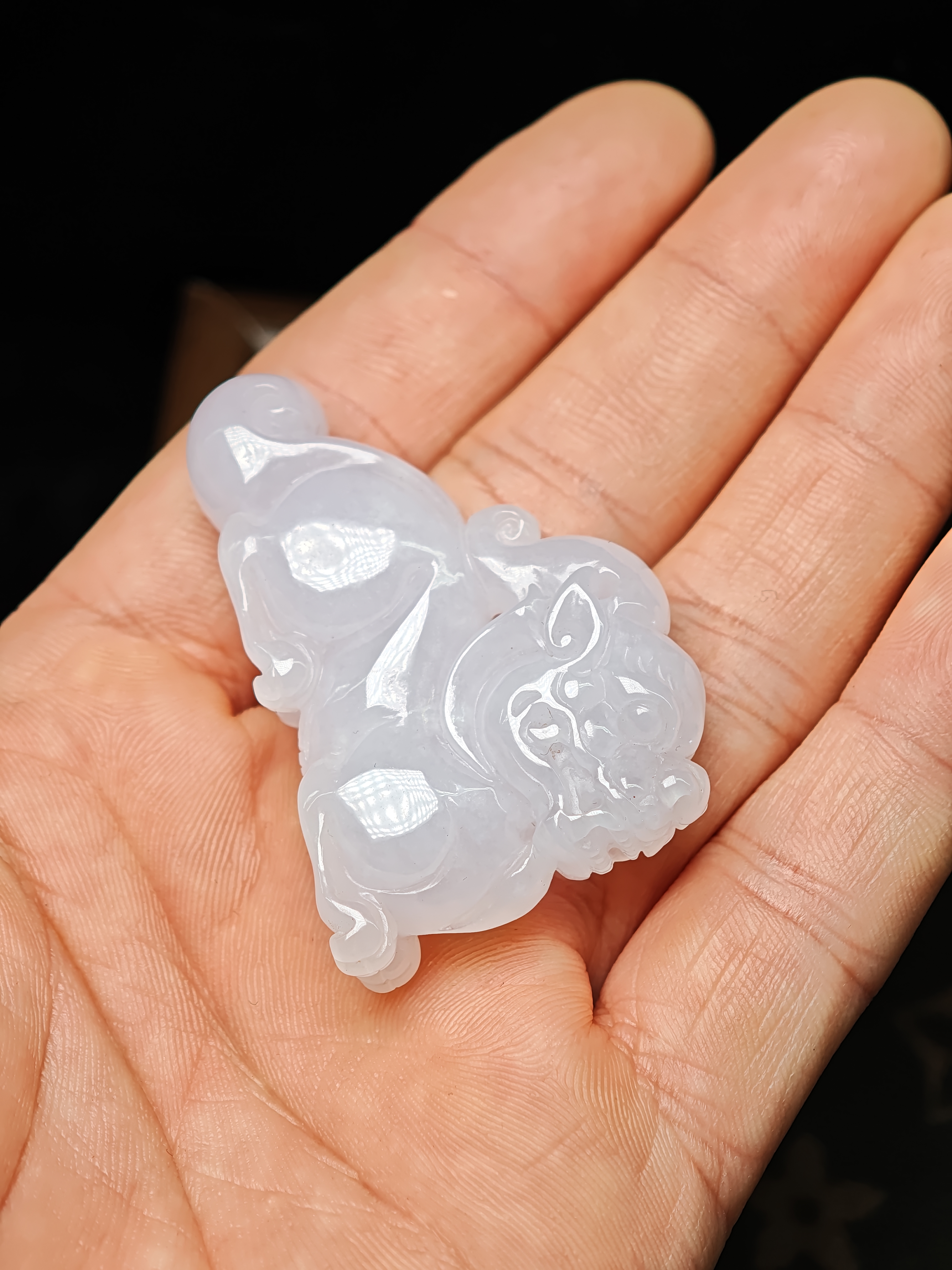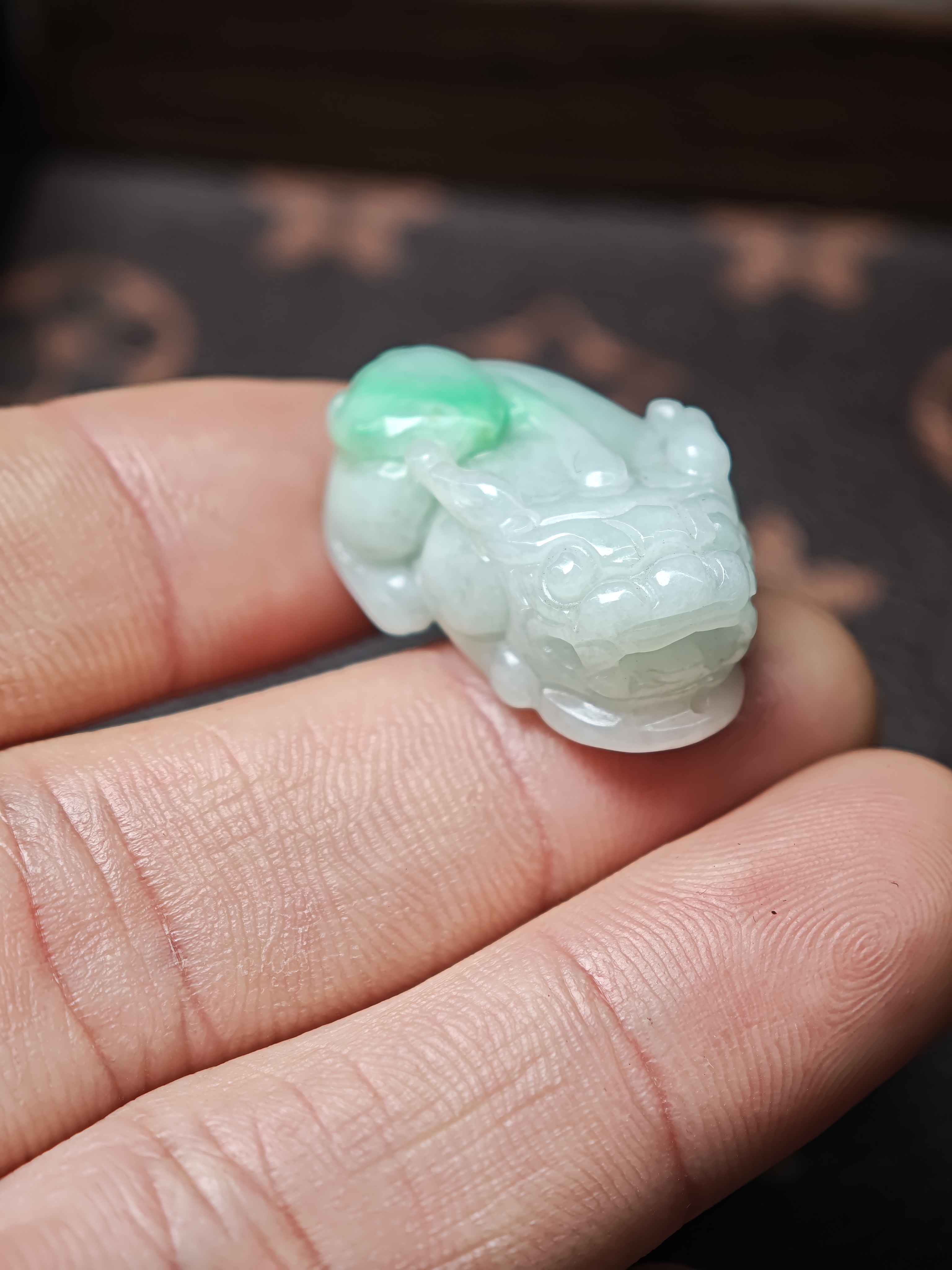 天然缅甸A货翡翠浅绿霸王貔貅男女款冰糯种玉石吊坠通财皮丘挂件