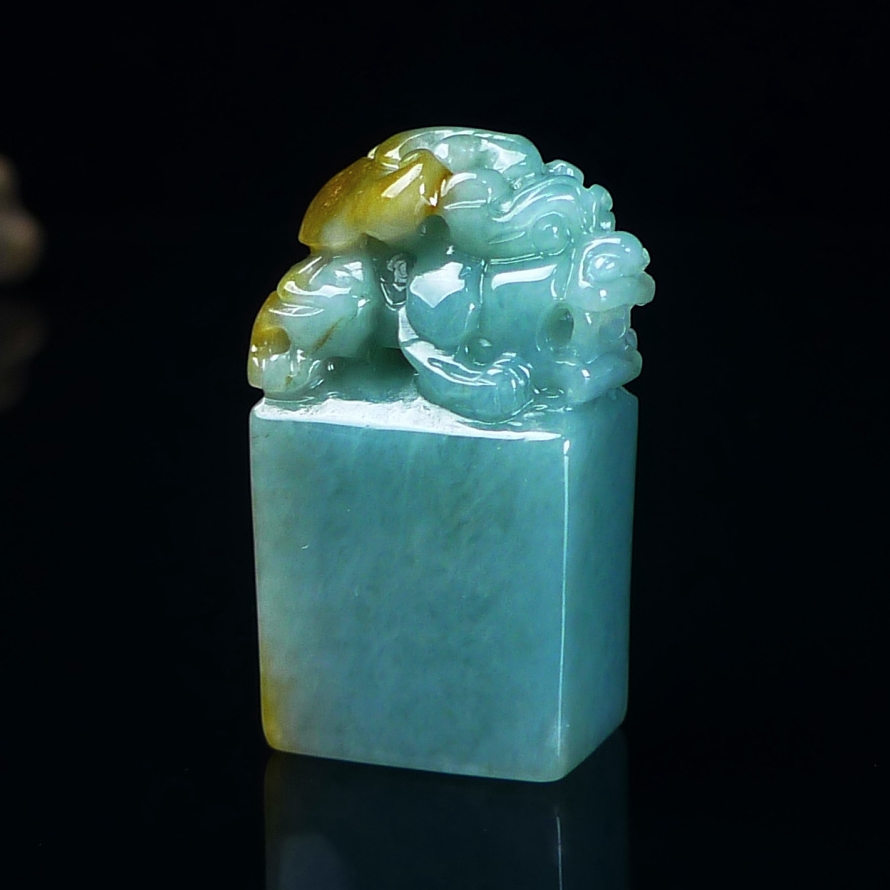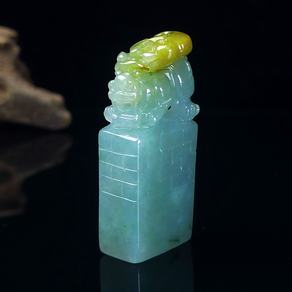 缅甸天然翡翠A货貔貅印章玉石 黄翡翠貔貅印章镇纸 篆刻代刻字