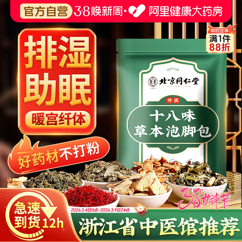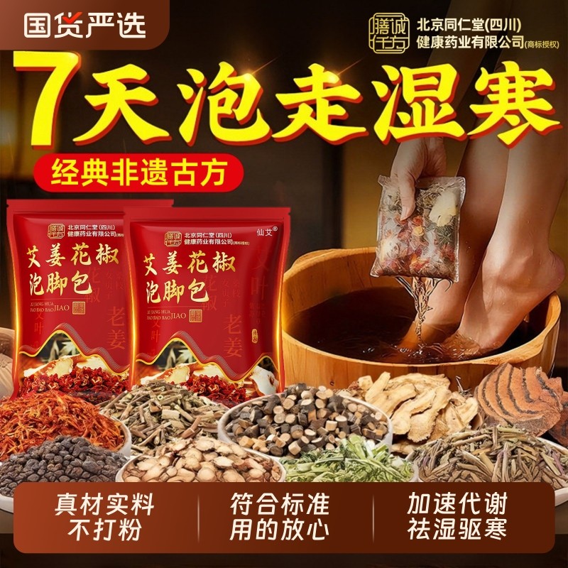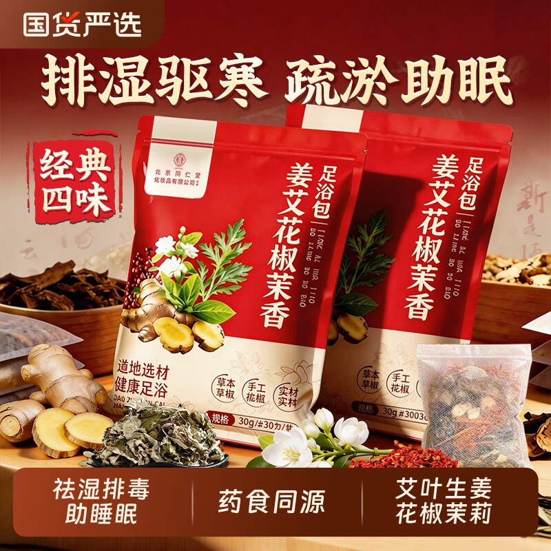 北京同仁堂泡脚药包湿气睡眠助排汗毒花椒艾草生姜驱寒足浴包男女