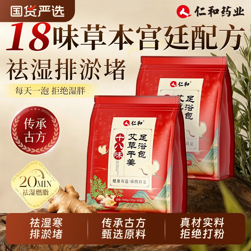 南京同仁堂泡脚药包艾草叶去湿气非排毒助睡眠驱寒椒生姜足浴调理