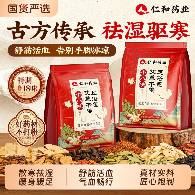 南京同仁堂泡脚药包驱寒祛湿排毒助睡眠男女士艾叶花椒生姜泡脚包