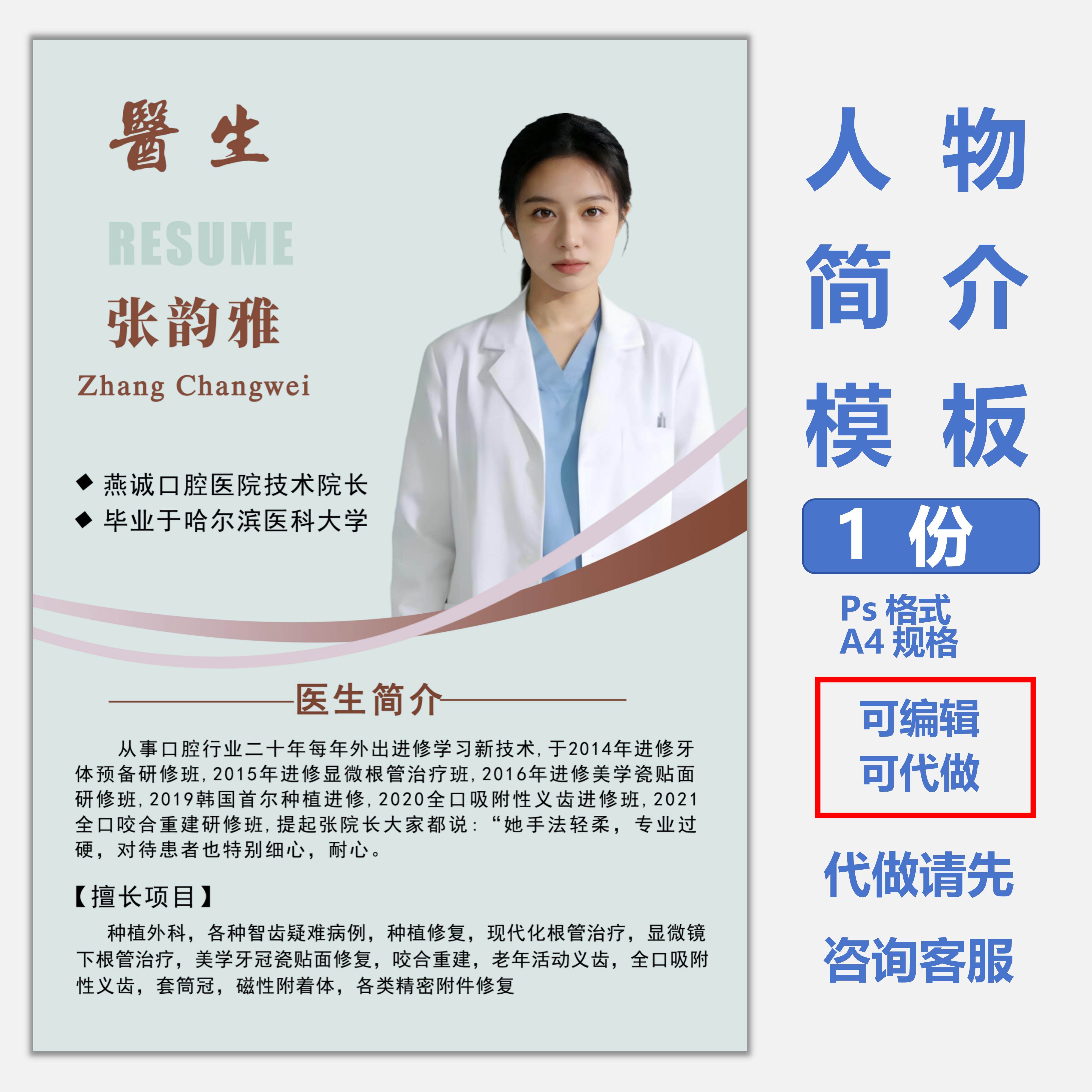 医生简历模板设计制作素材PS格式可编辑个人简介海报宣传单电子版
