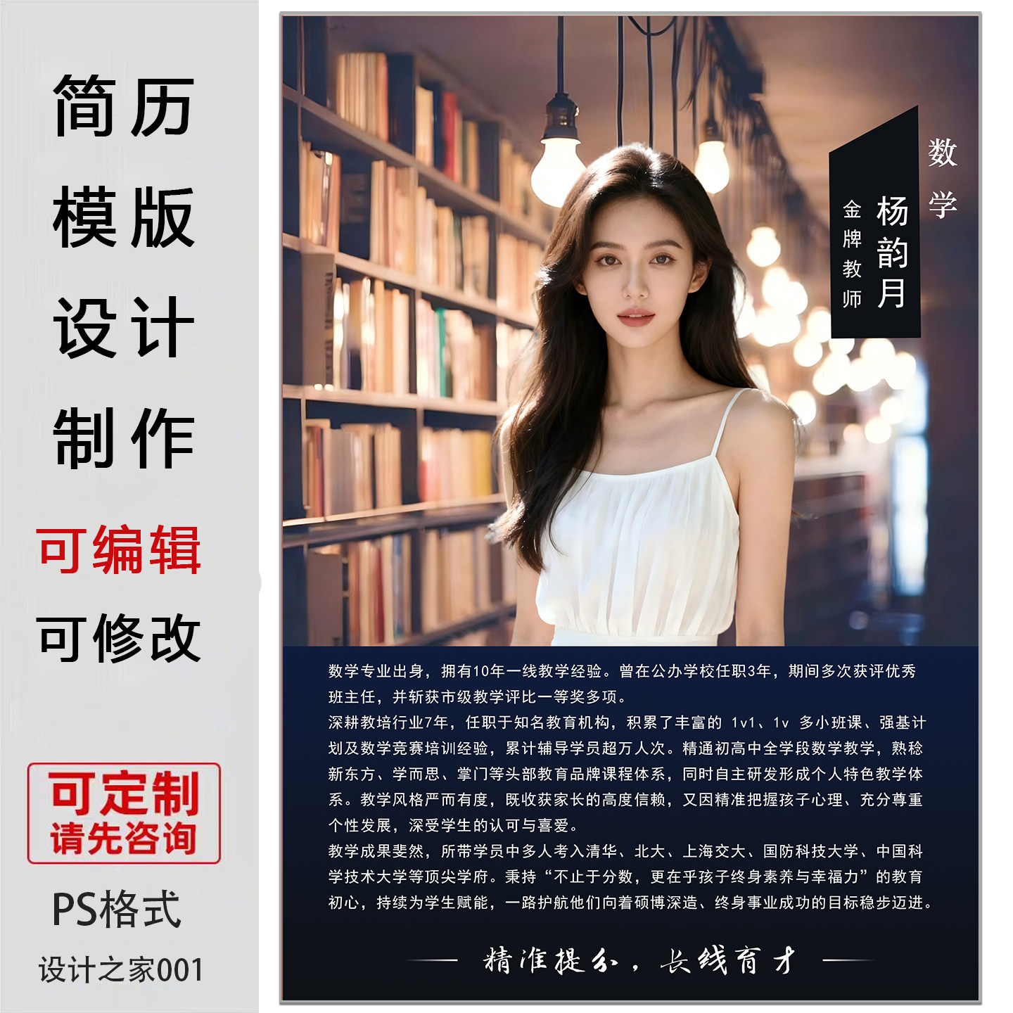老师个人简历模板设计制作可编辑定制PS素材教师简介海报电子版