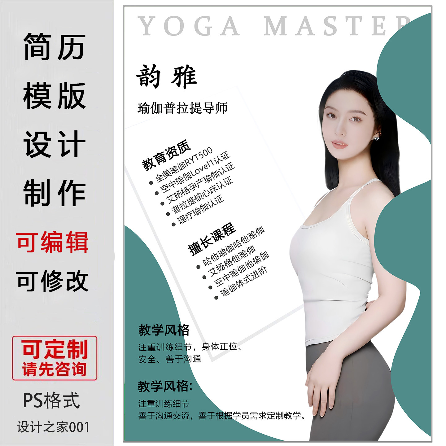 瑜伽教练简历模板设计制作可编辑修改PS格式老师简介海报电子版
