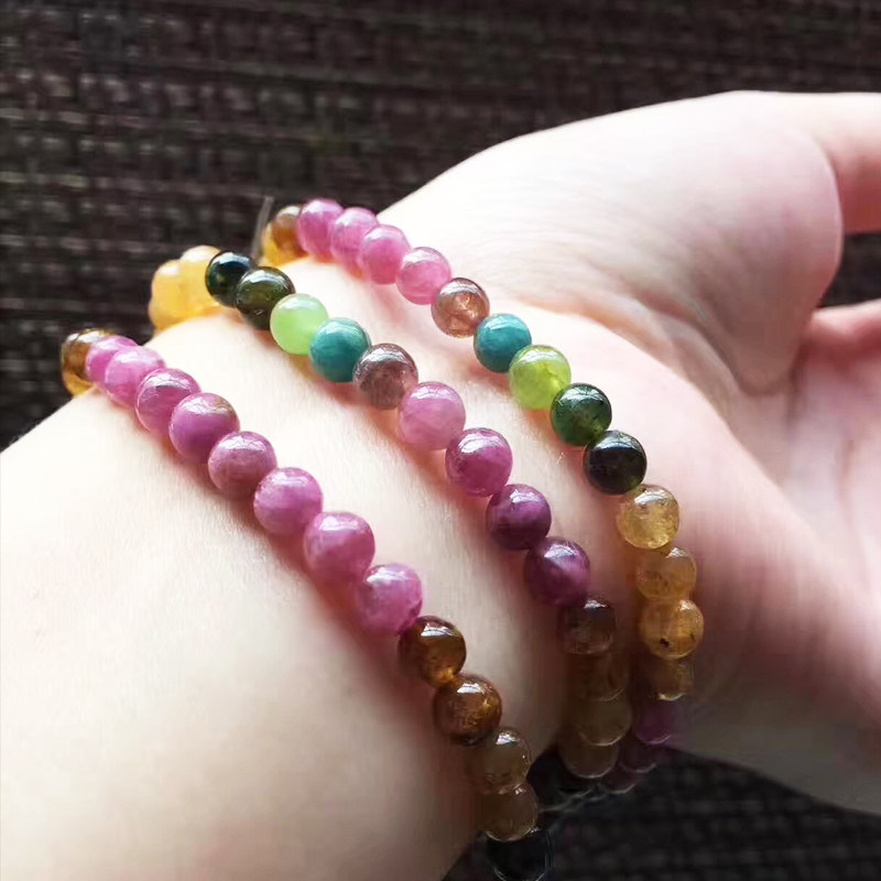老料碧玺手链单圈多圈正品老矿彩虹色碧玺珠子散珠串珠单圈手串女