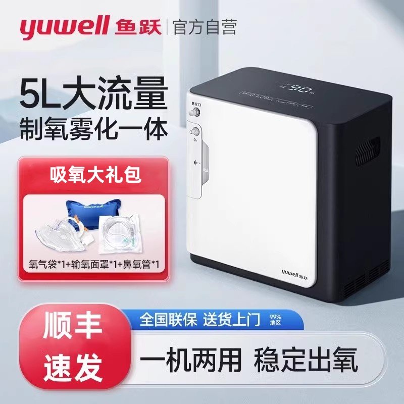 鱼跃制氧机老人孕妇吸氧机家用制氧雾化一体机小型便携呼吸氧气机