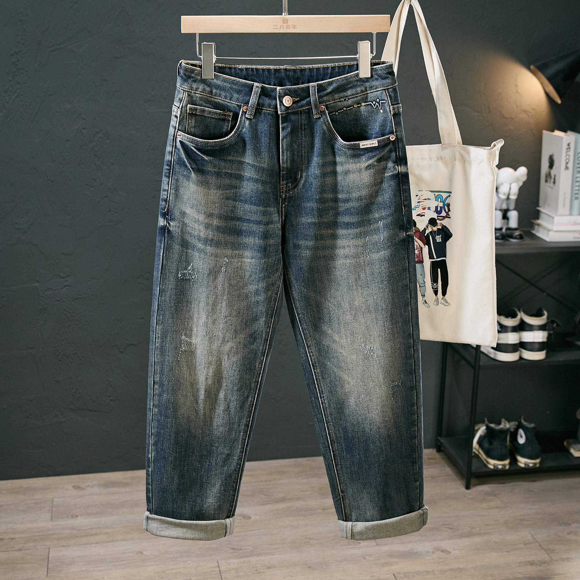 - 九分裤男 牛仔裤